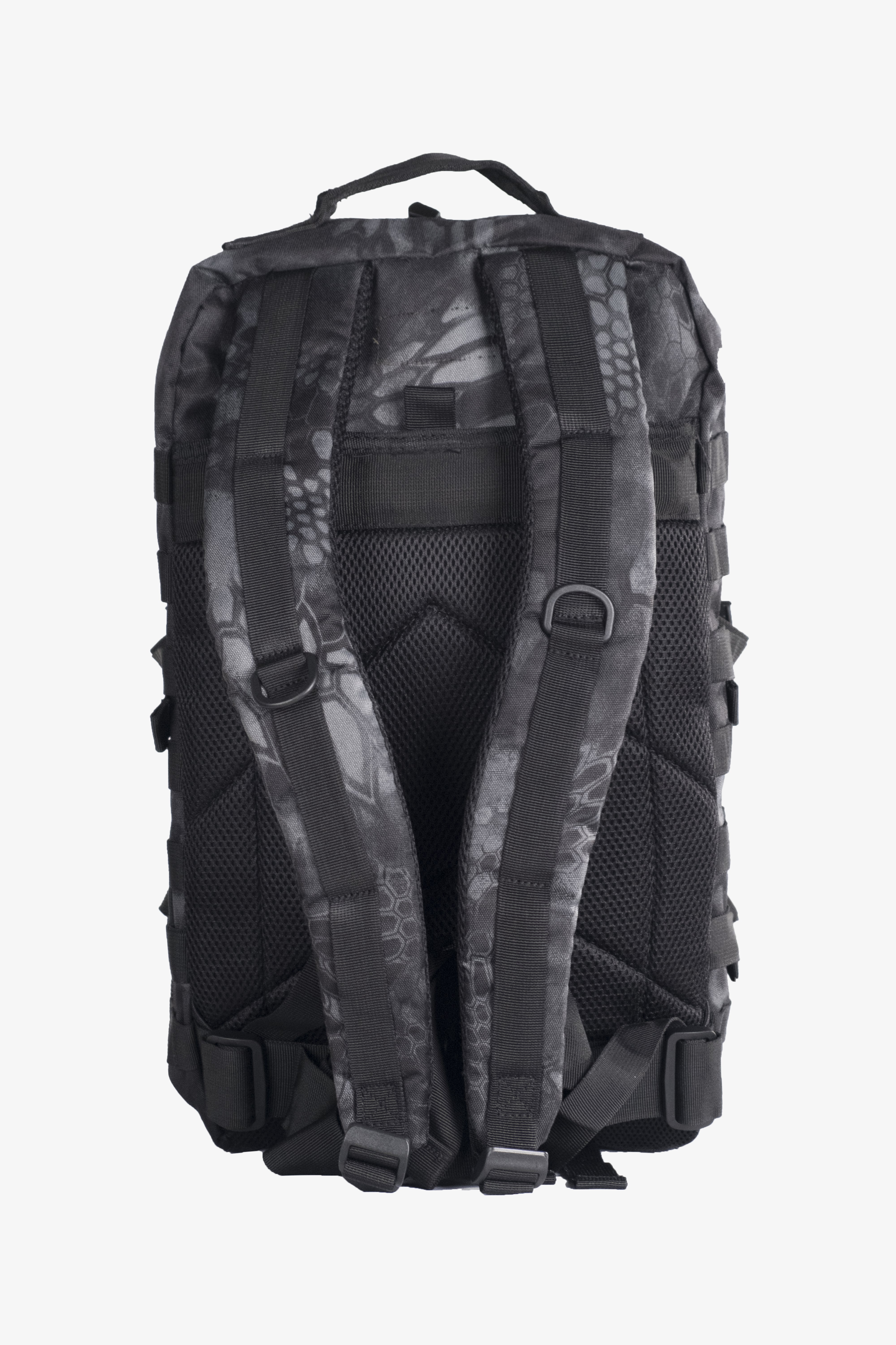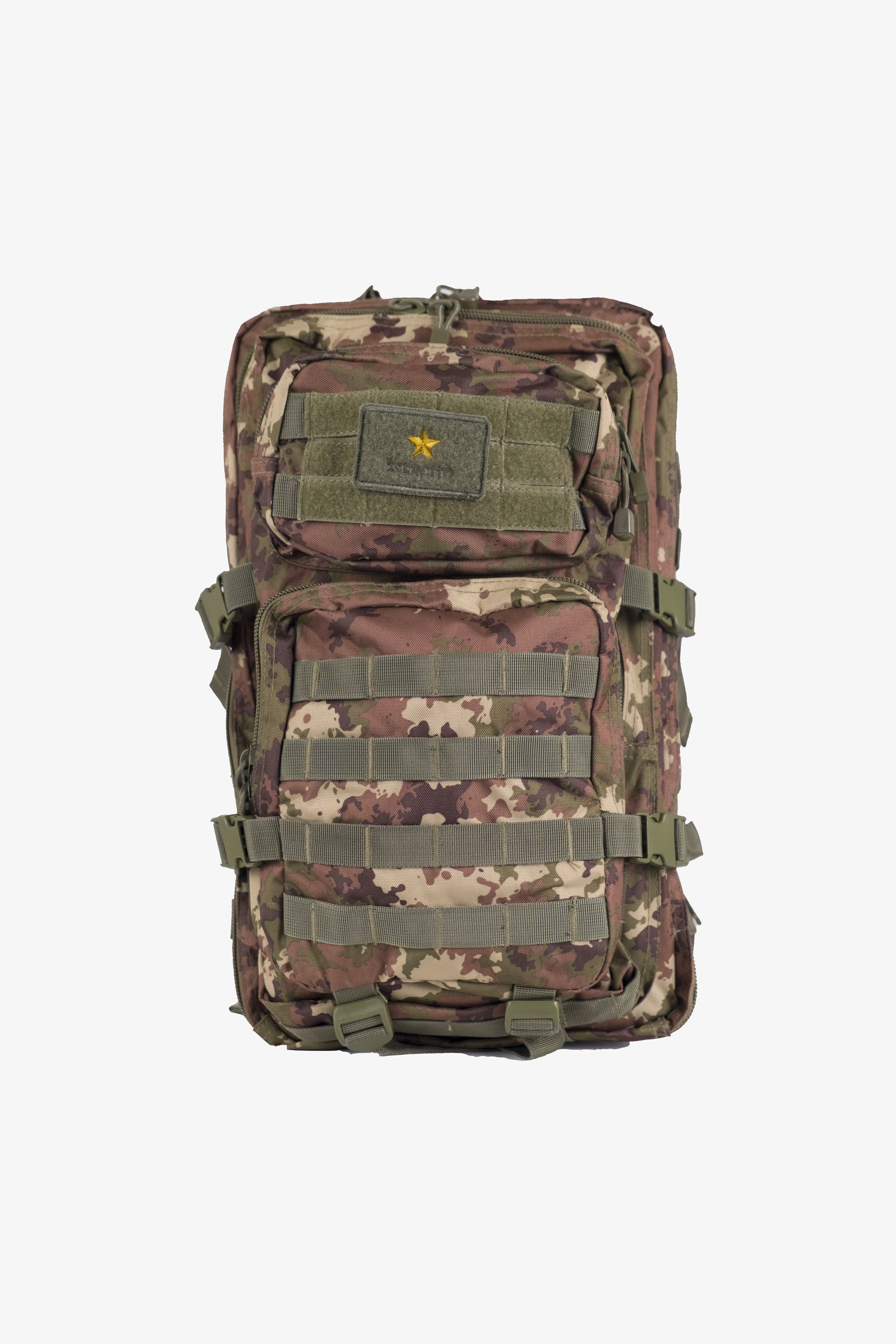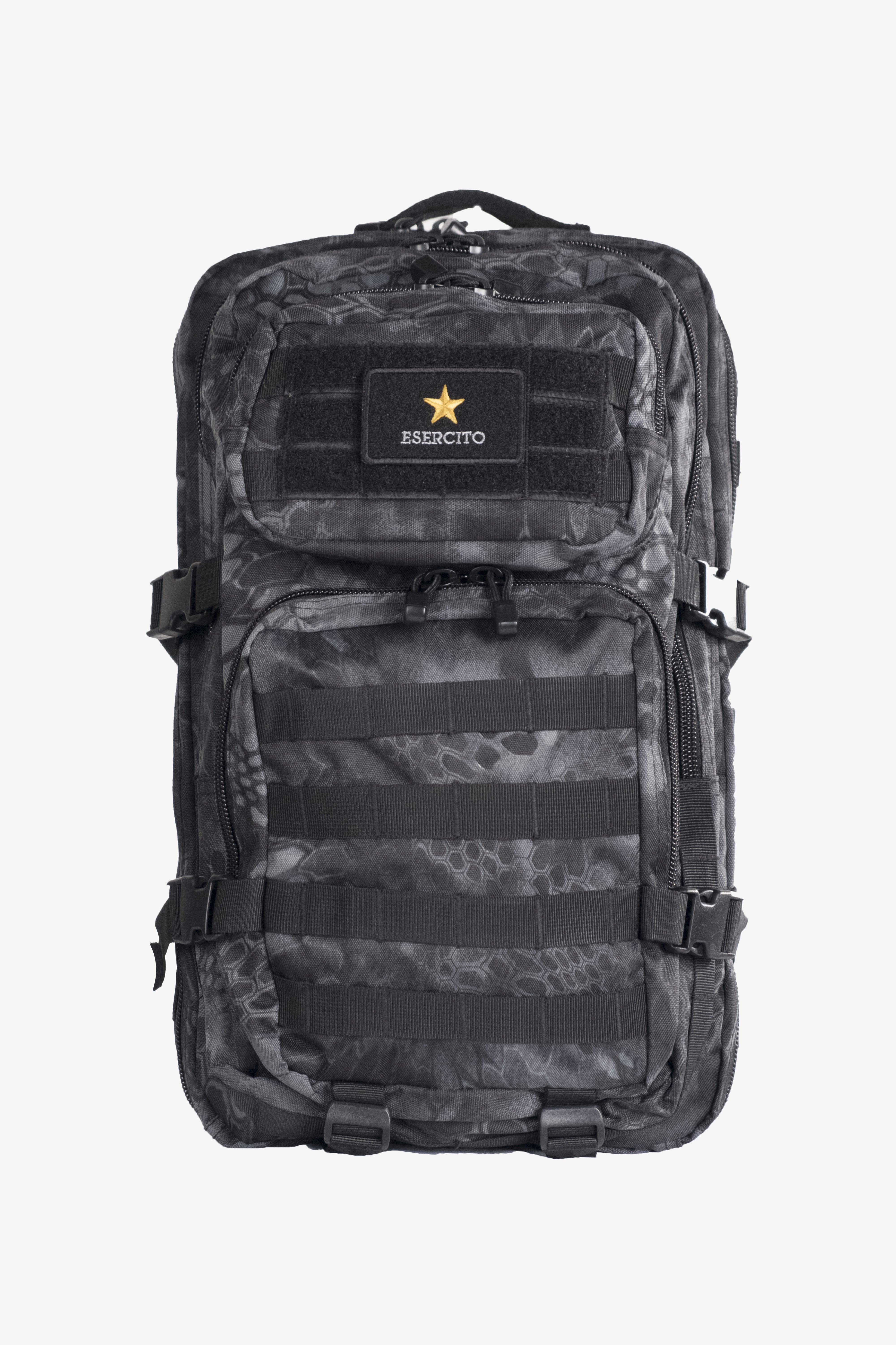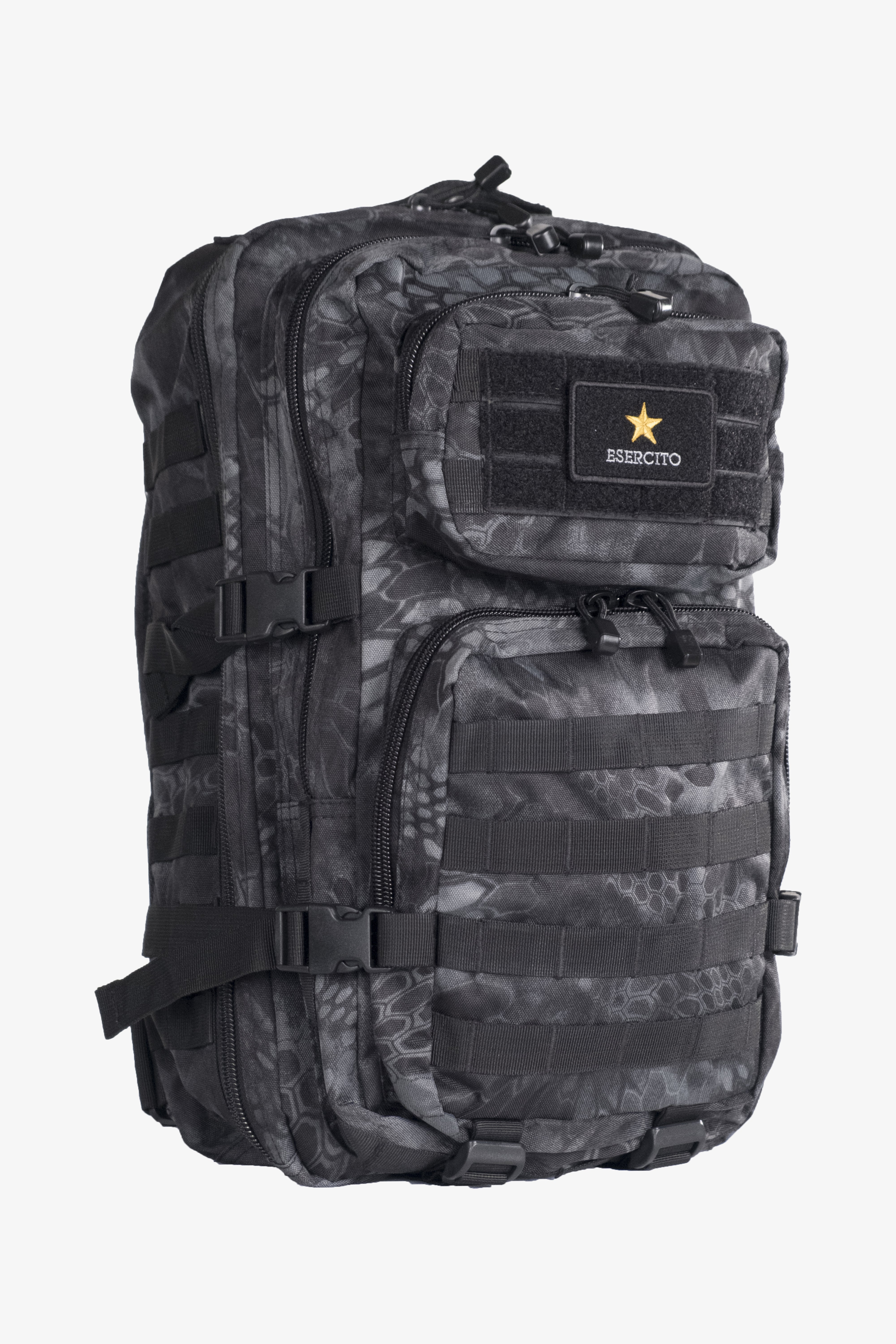 Zaino tattico, capacita' 36 litri, e' in tessuto cordura di nylon impermeabile, ha spallacci imbottiti di forma ergonomica, regolabili in lunghezza, schienale imbottito, cinturino addominale regolabile, maniglia per il trasporto, 2 grandi tasche con diverse cerniere e tasca integrata con chiusura a strappo.