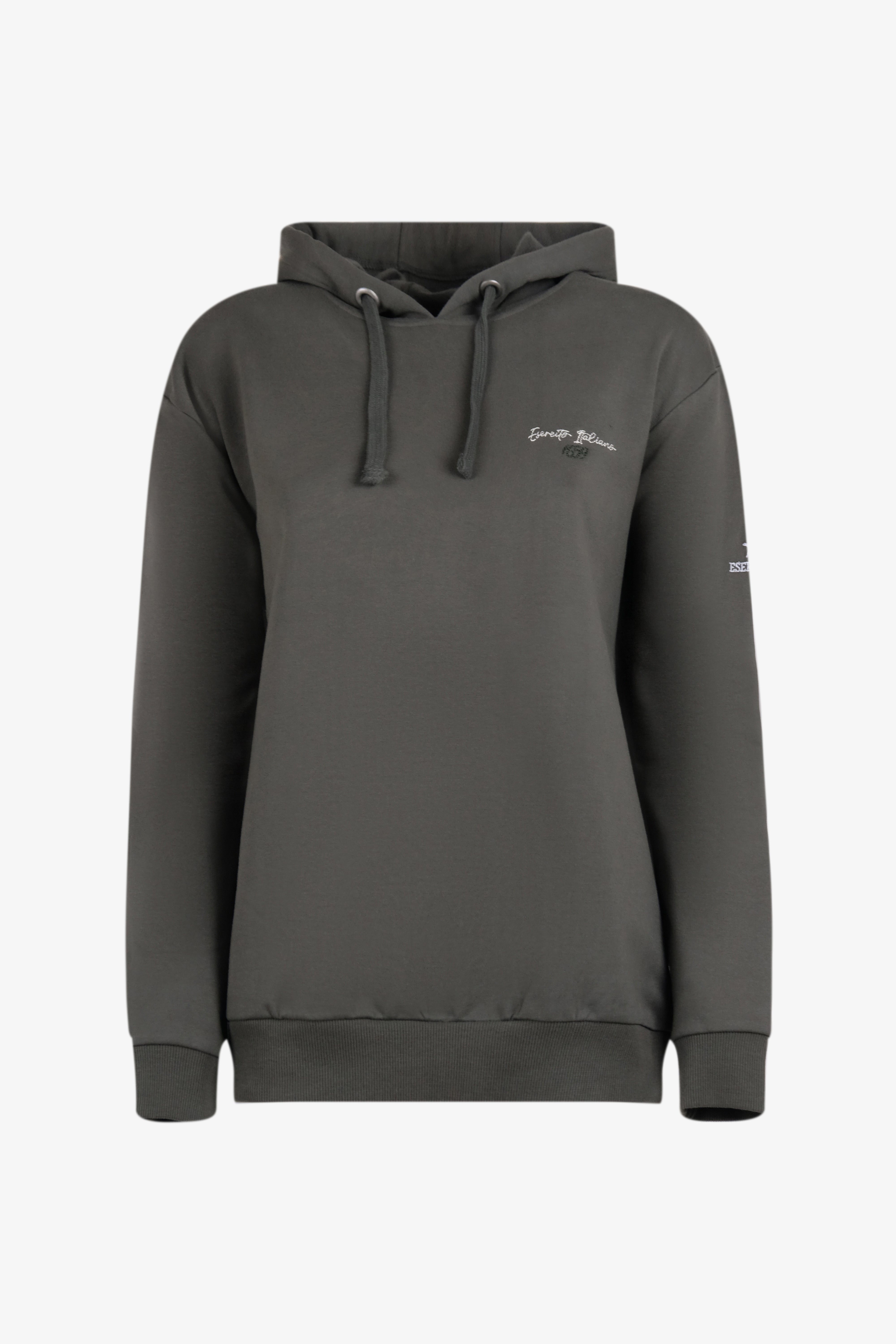 Questa felpa con cappuccio e' realizzata in morbido cotone elasticizzato, pensata per garantire comfort e resistenza. Presenta a punto cuore un ricamo con la scrita 'Esercito Italiano' e polsini elasticizzati che assicurano una vestibilita' ottimale. Perfetta per il tempo libero, lo sport o come capo casual quotidiano, e' ideale per chi desidera uno stile semplice ma distintivo.