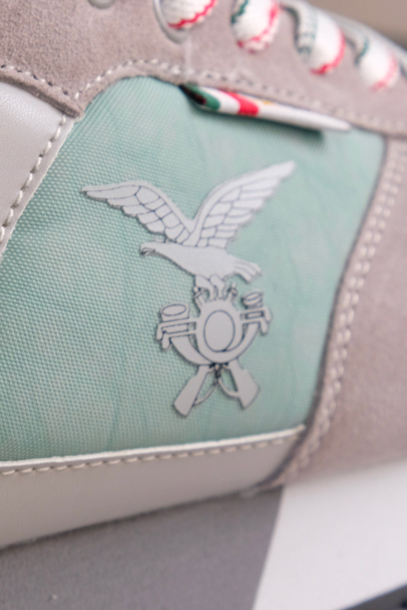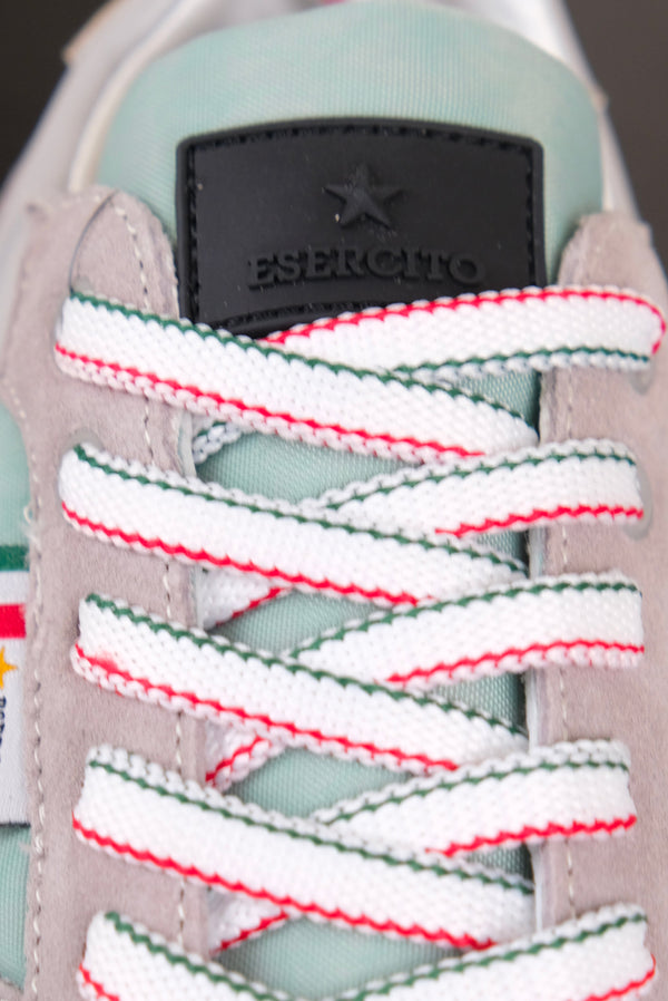 Scarpe da Uomo con tomaia in camoscio e nylon, per rendere il prodotto traspirante. Strighe a motivo tricolore. Suola bianca e grigia in eva e battistrada in gomma che conferisce caratteristiche di durabilita'. Logo Alpini al centro e scritta Esercito sulla parte posteriore della scarpa.