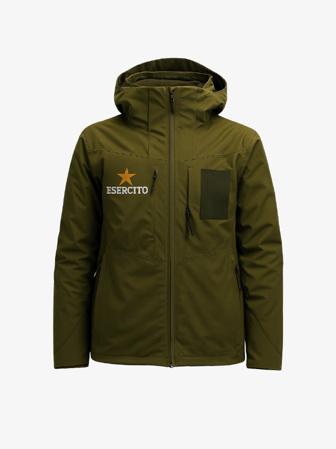 Giacca estremamente funzionale e orientata alla protezione dagli elementi anche nelle condizioni metereologiche peggiori, ma con un taglio e una realizzazione che seguono con precisione lo sciatore nel gesto atletico adattandosi perfettamente anche ai livelli piu' elevati dello sci alpino studiata e realizzata avvalendosi dell'esperienza di atleti e istruttori nazionali in forza al Ce.Add.Alp.;