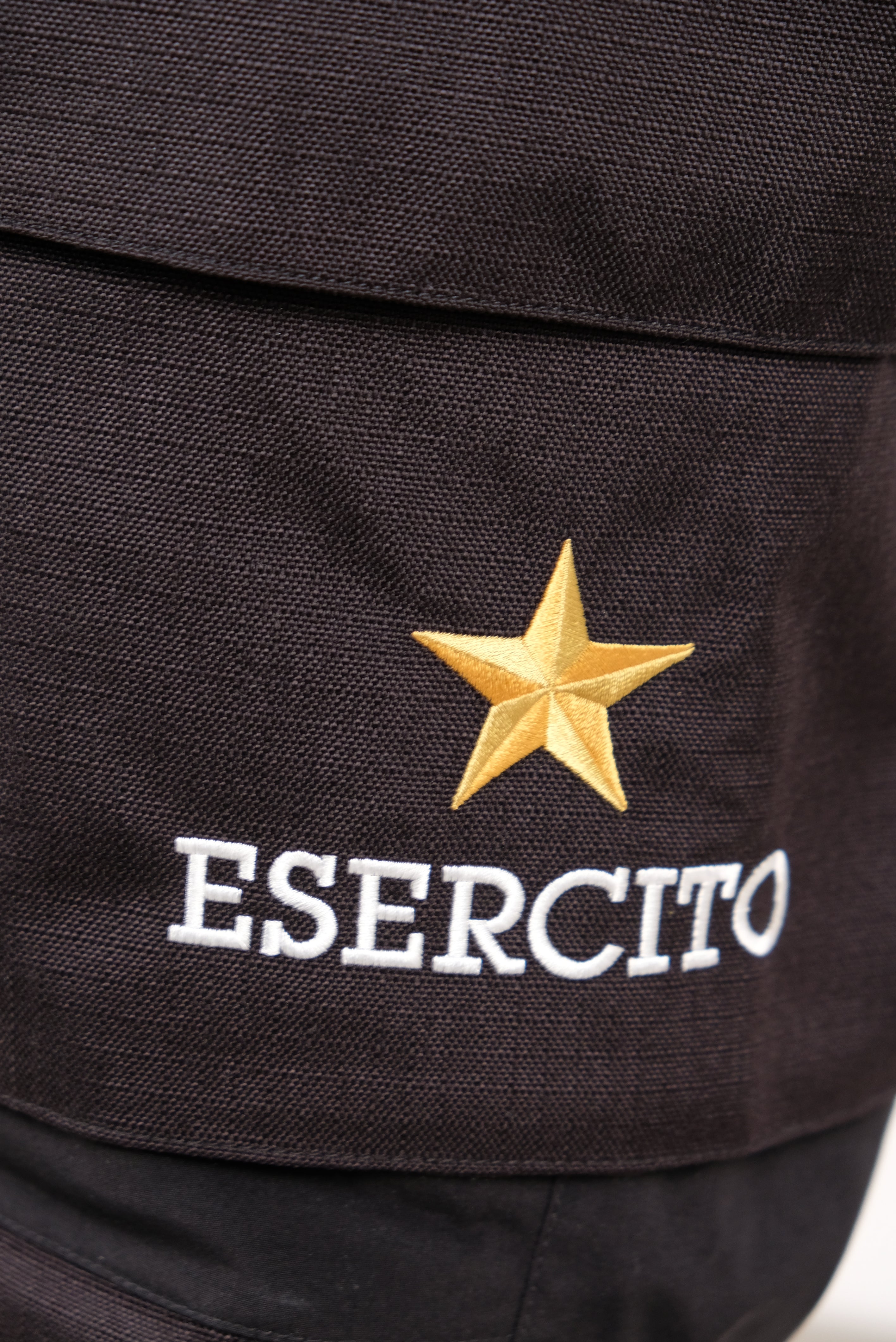 100% Poliestere Elasticizzato e altamente confortevole che permette una migliore evacuazione dell'umidita corporea con stampa all-over del logo Esercito in colorazione bianco con stella oro e base in colore verde militare 5743C.
