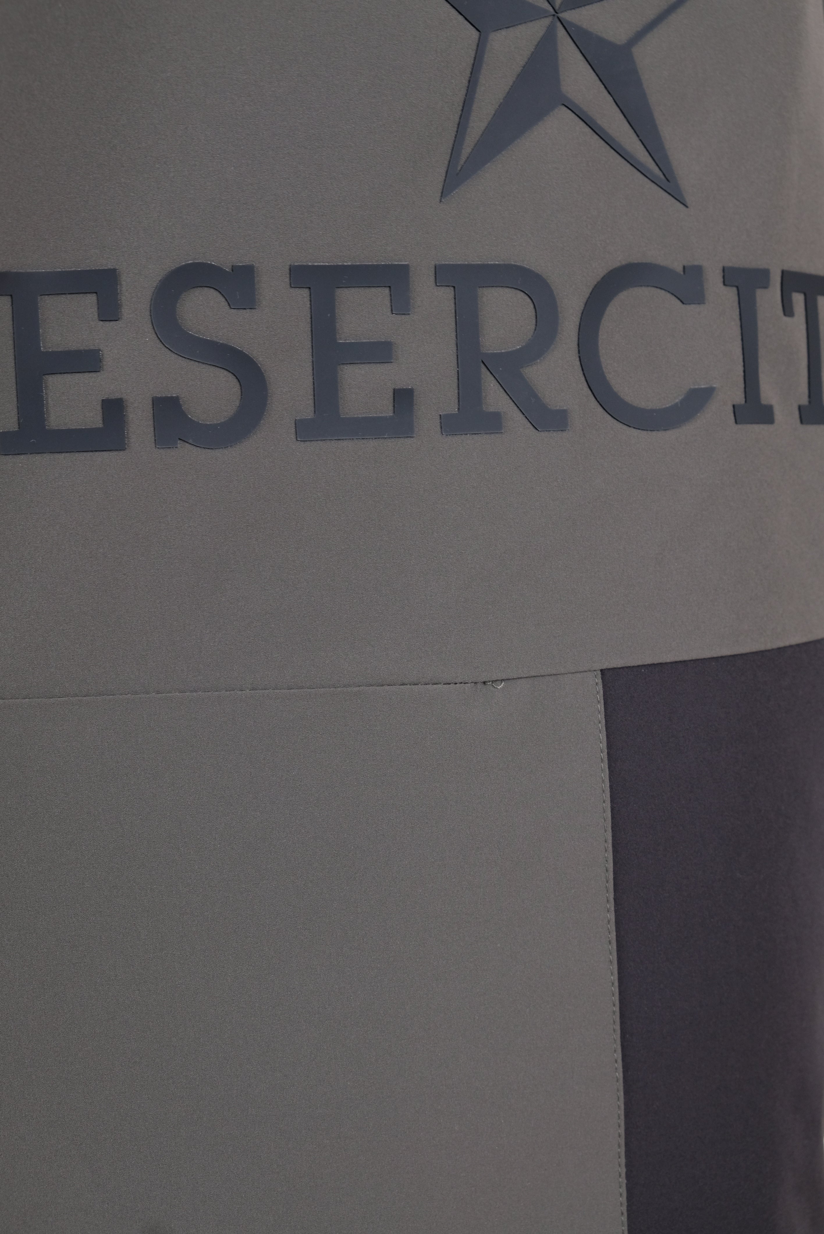 Technical Hybrid Jacket with padding with graphene treatment for thermal insulation and lightness, 10K waterproof and 5K breathable.Made with an adjustable hood, collar with ventilation holes, facing and windproof false underlay. The waist is elasticated, the wrists adjustable and the main seams thermonastrated. The jacket also features waterproof zips, two waist pockets, two vertical chest pockets and a zip safety pocket. Composition in 92% nylon and 8% elastane