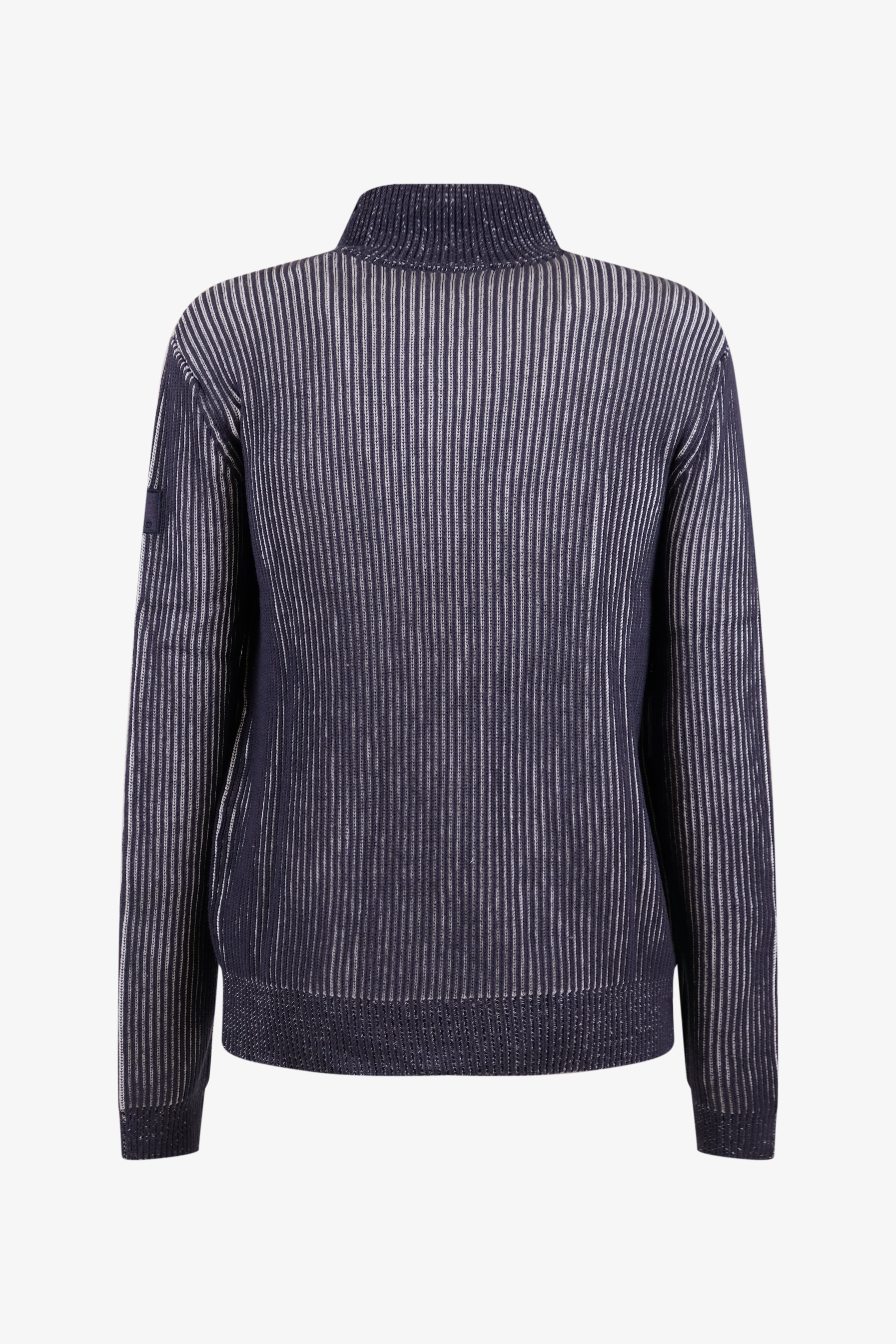 Elegant long-sleeved tricot with vertical striped pattern. Made of quality fabric, it offers comfort, resistance and a fit that enhances the figure. The ribbed high collar gives a refined touch and protects from the cold, making it perfect for the autumn-winter season. Easy to combine with jeans and classic trousers, it is a very versatile garment.