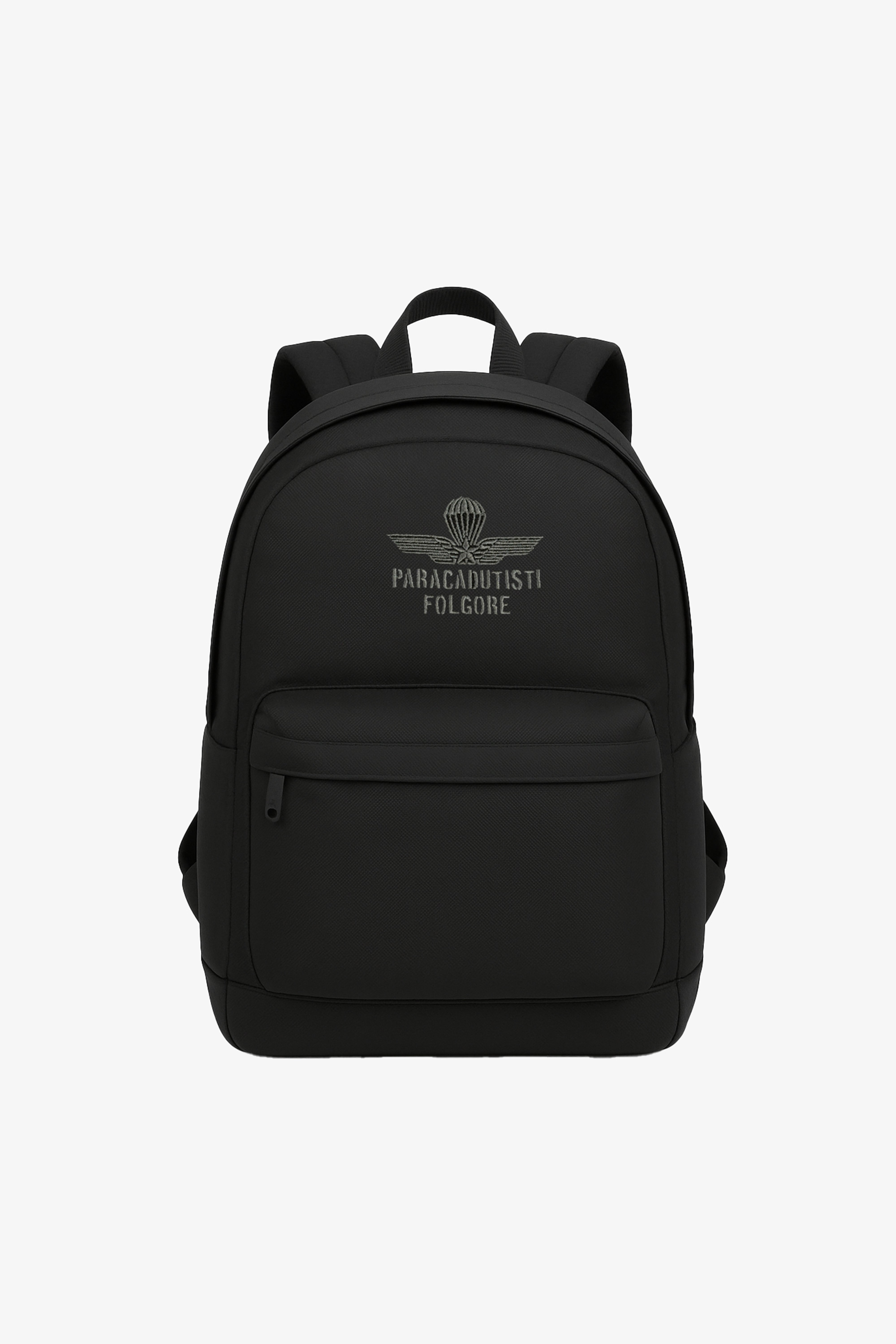 Discover this elegant unisex backpack, perfect for everyday work and work. Made of durable fabric, it features a large compartment with zip closure and a front zip pocket, for easy access to essentials. The design is embellished with Folgore Paracadutisti embroidery which adds a distinctive touch. The adjustable shoulder straps and reinforced upper handle guarantee comfort and practicality for every occasion. Height 34CM Width 32cm depth 9CM.
